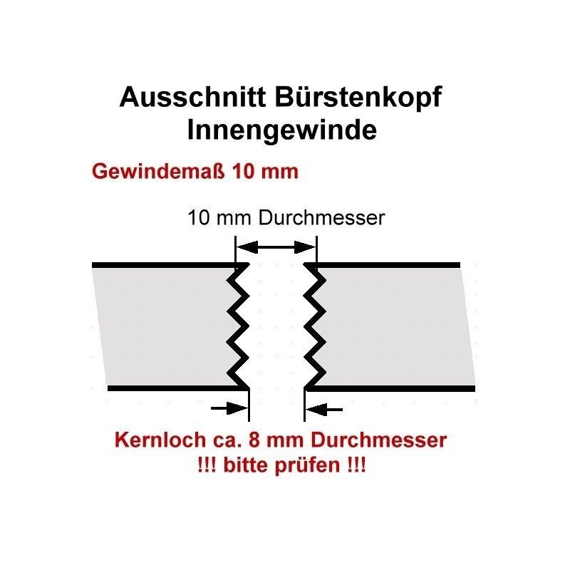- das 10 mm Innengewinde hat ein Kernloch von ca 8 mm.