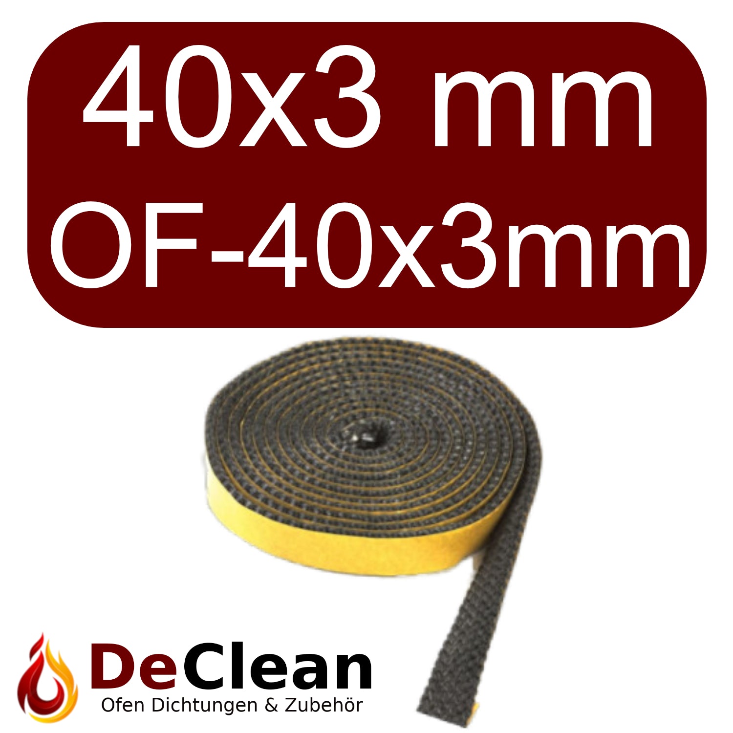 1 Meter Kaminglasdichtung, 40 x 3 mm