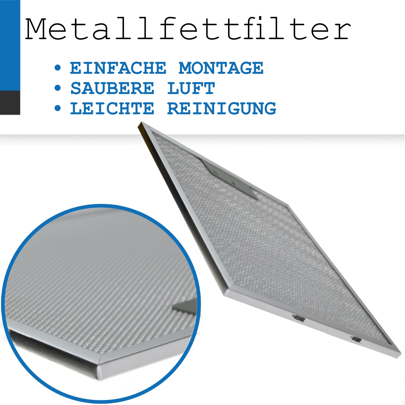 Dieser hochwertige Metallfettfilter sorgt dafür, dass Fett und Öl wirksam aus der Luft gefiltert werden. Zudem ist er temperaturbeständig, um Ihnen eine optimale Nutzung Ihrer Dunstabzugshaube zu gewährleisten.Die unangenehmen Gerüche und fettigen Dämpfe, die während des Kochens entstehen, können im Laufe der Zeit Ihre Metallfilter verstopfen. Um dies zu vermeiden, empfiehlt es sich, die Metallfilter einmal im Monat zu reinigen.
