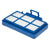 • weiß mit blauem Kunststoffrahmen
