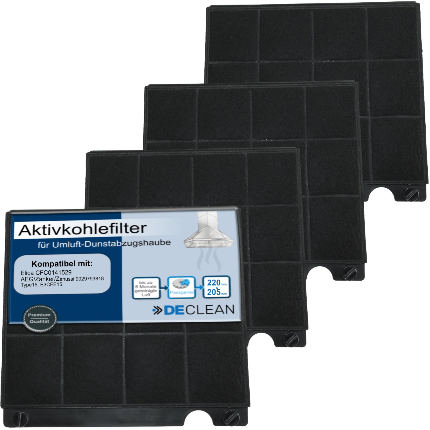 4 Stk. DECLEAN Aktivkohlefilter Dunstabzugshaube kompatibel mit Typ 15 Elica CFC0141529 AEG Zanker Zanussi 9029793818 E3CFE15 Whirlpool Bauknecht 484000008575 u.a.